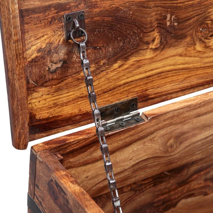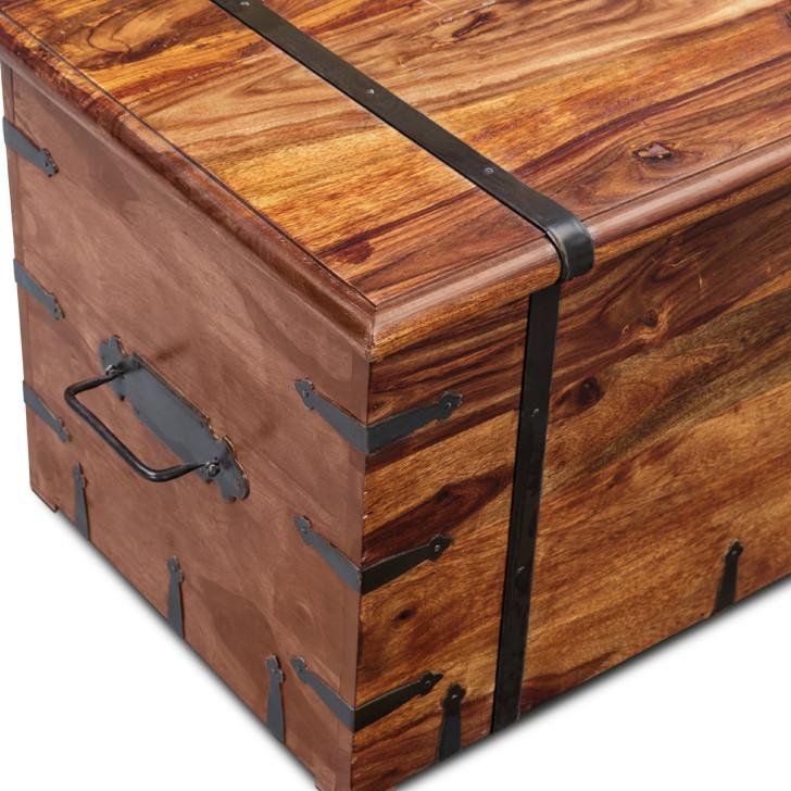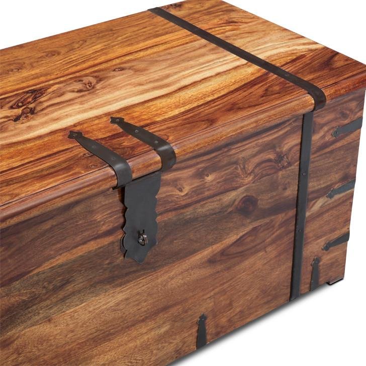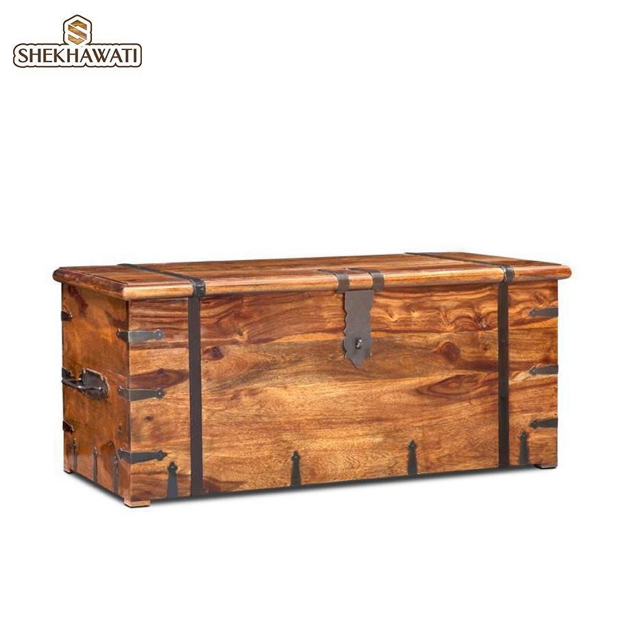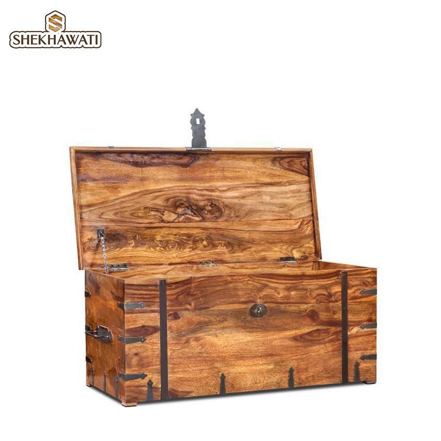 * Material: Solid Wood (Sheesham) * Colour: Natural * Style: Contemporary * Trunk Box Height: 17 inches (43 cm), Length: 40 inches (101 cm), Width: 18 inches (45cm) * Delivery Condition: Assembled * Quantity: 1 Piece (Trunk Box)